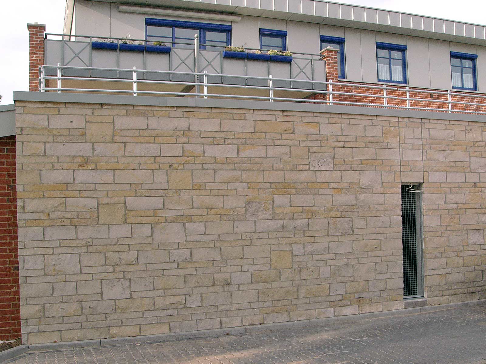 Verblendmauerwerk ist die konstruktiv nicht tragende Wetterschutzschale eines Bauwerks. Hierfür eignet sich Obernkirchener Sandstein® besonders. Unsere Verblender sind nicht nur eine optische Aufwertung, sie sind zudem frostsicher und langlebig. Bei der Oberflächengestaltung bieten Verblender aus Obernkirchener Sandstein® Raum für Ihre Individualität. Denn auch außerhalb unseres Standardlieferprogrammes kann Ihr Stein nach Ihren Wünschen geplant werden. Damit bieten Verblender aus Obernkirchener Sandstein® beste Voraussetzungen für nachhaltige Freude an Ihrem Projekt. Dem kreativen Zusammenspiel mit anderen Gestaltungselementen sind kaum Grenzen gesetzt.